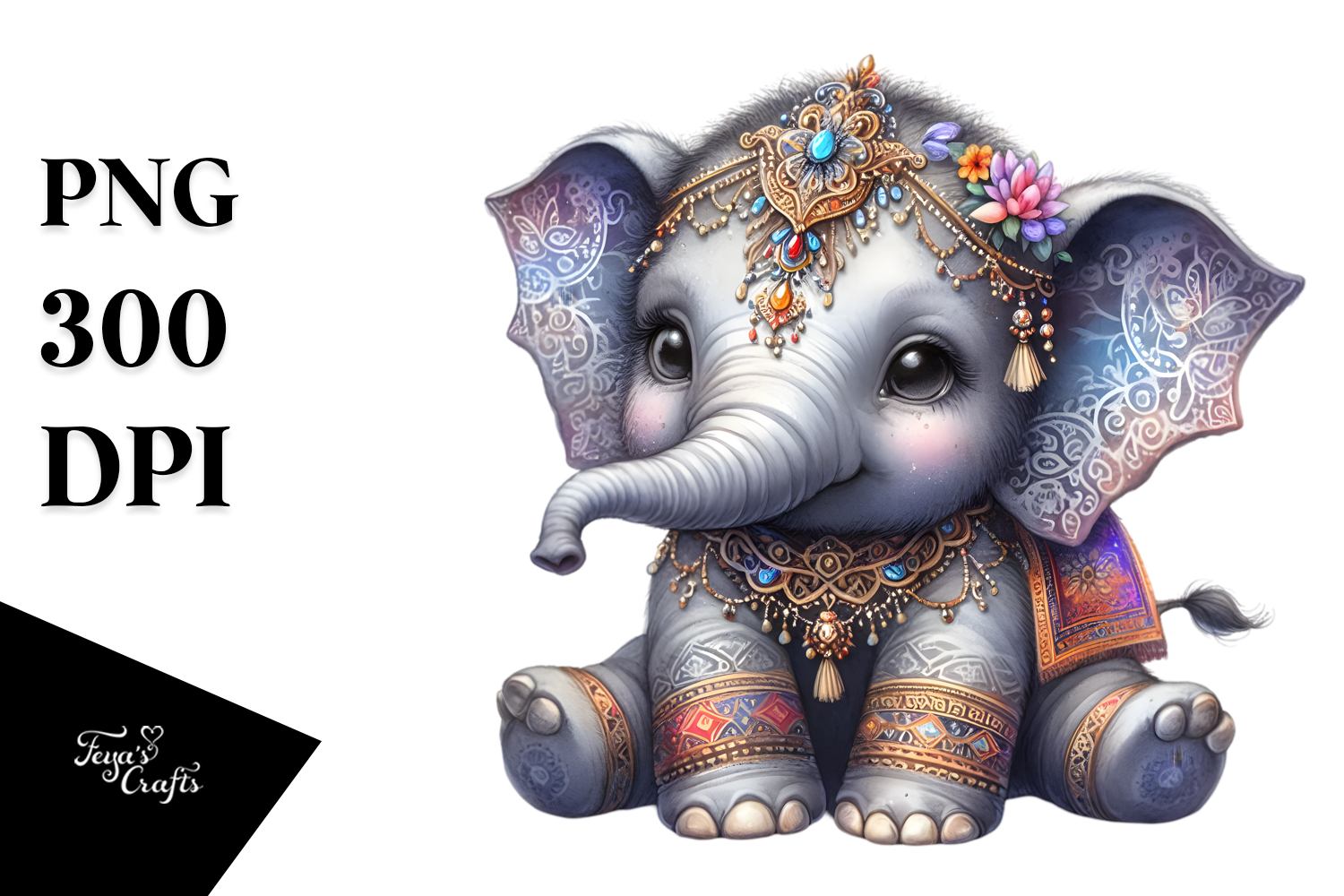 Cute Baby Elephant in Digital Watercolor, PNG example image 1