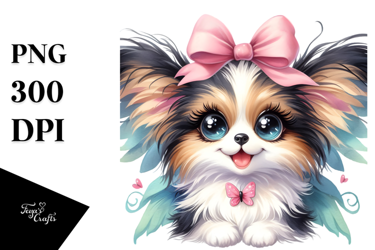 Watercolor Cute Painting Happy Artistic Adorable Papillon Bigeyes