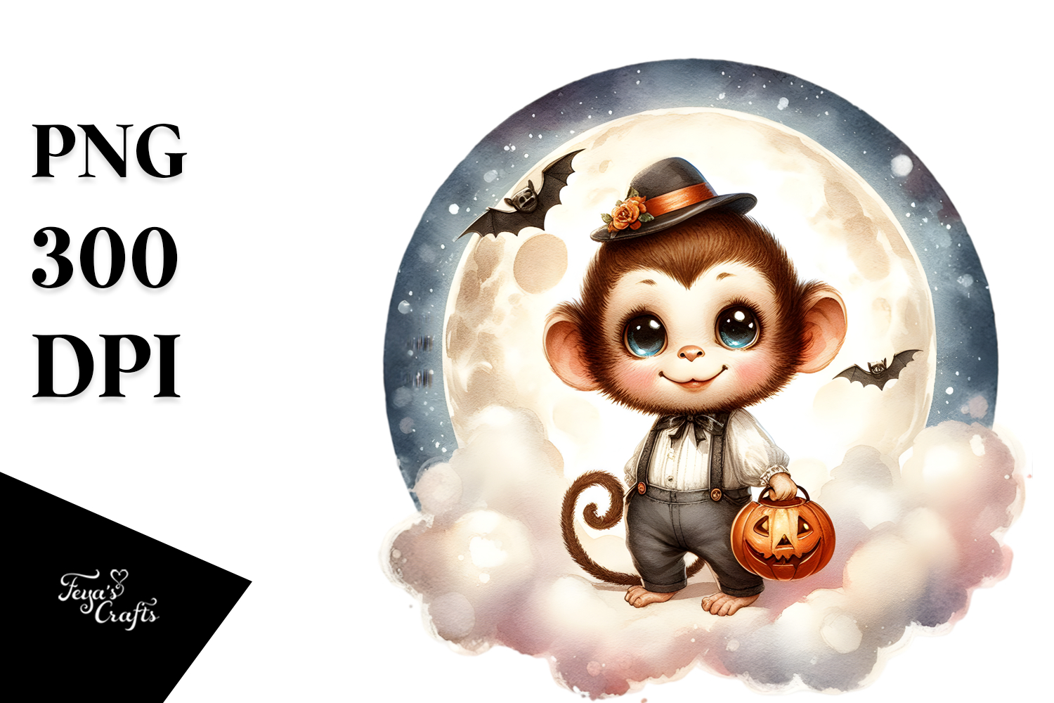 Similar Design Products to Retro Baby Monkey in Halloween Costume, Transparent PNG
