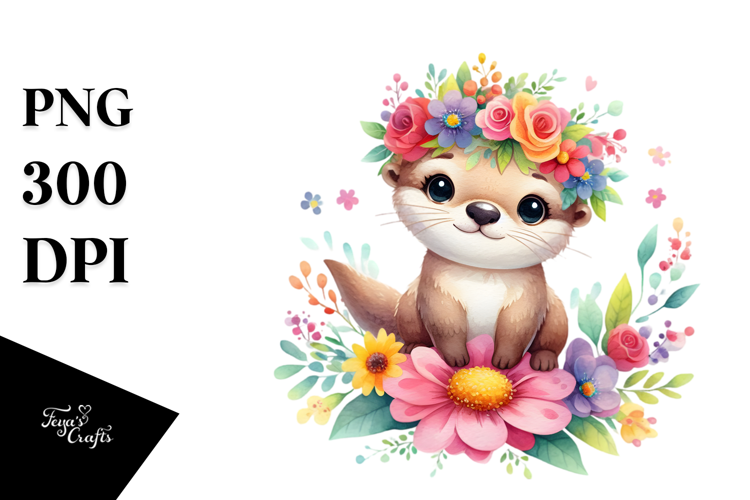 Cute Otter with Flower Crown, Transparent PNG example image 1