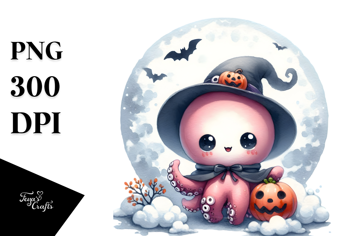 Cute Baby Octopus on Cloud Halloween PNG example image 1