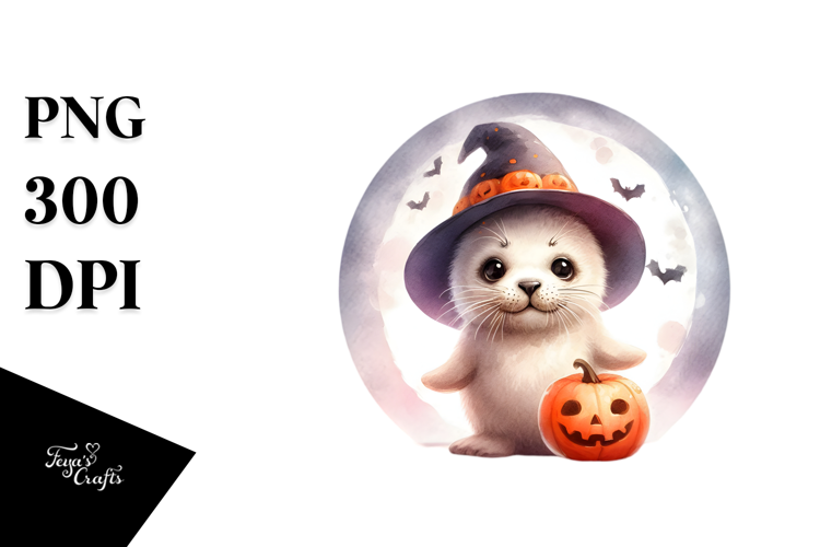 Cute Baby Seal on Cloud Halloween PNG example image 1