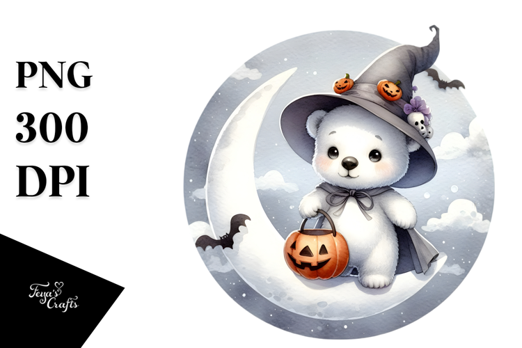 Cute Baby Polar Bear on Moon Halloween PNG example image 1