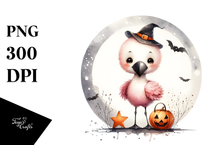Watercolor Halloween Cute Baby Star Flamingo Washed Standing Dressed