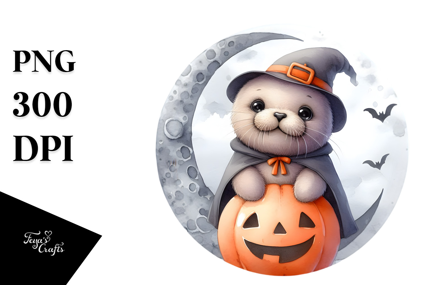 Washed Watercolor Walrus on a Moon PNG example image 1