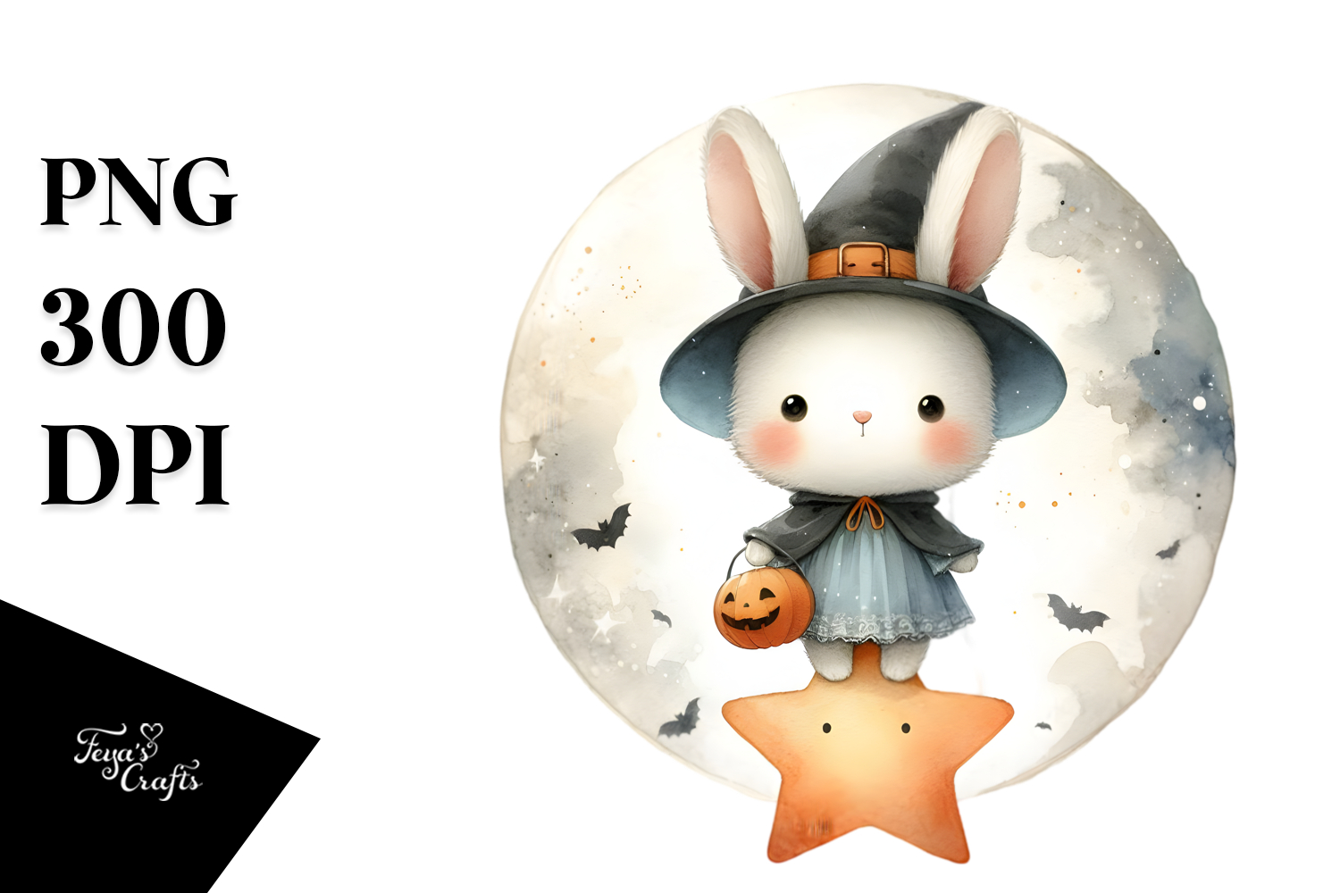 Cute Baby Bunny Dressed for Halloween PNG example image 1