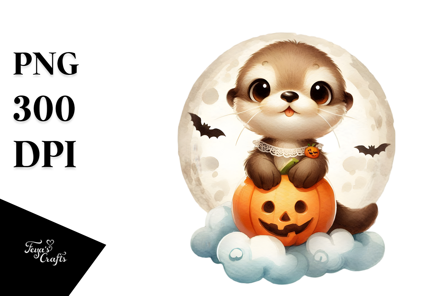 Cute Baby Otter Cloud Halloween PNG example image 1