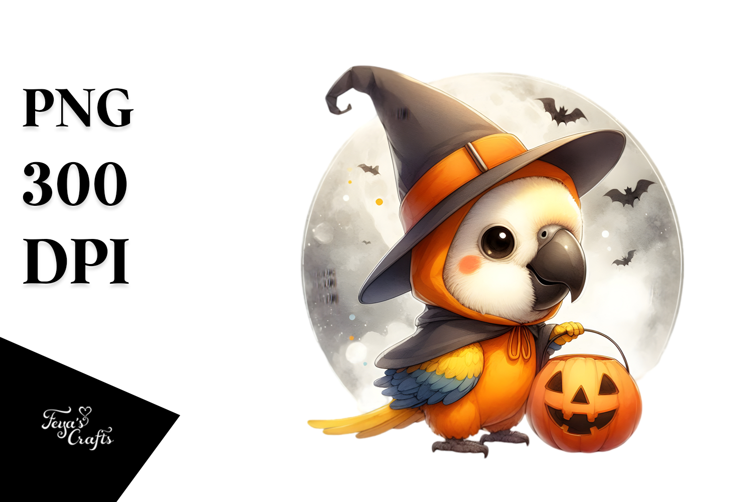 Cute Baby Macaw in Halloween Attire, Digital Art example image 1