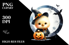 Washed Watercolor Chicken on Halloween Moon, PNG example image 1