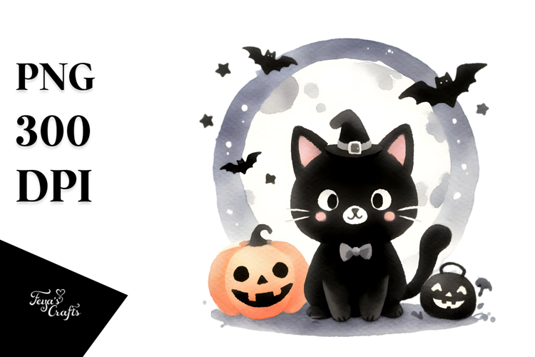 Sticker Summer Halloween Flower Clipart Png Sublimation Whitebackground Blackcat