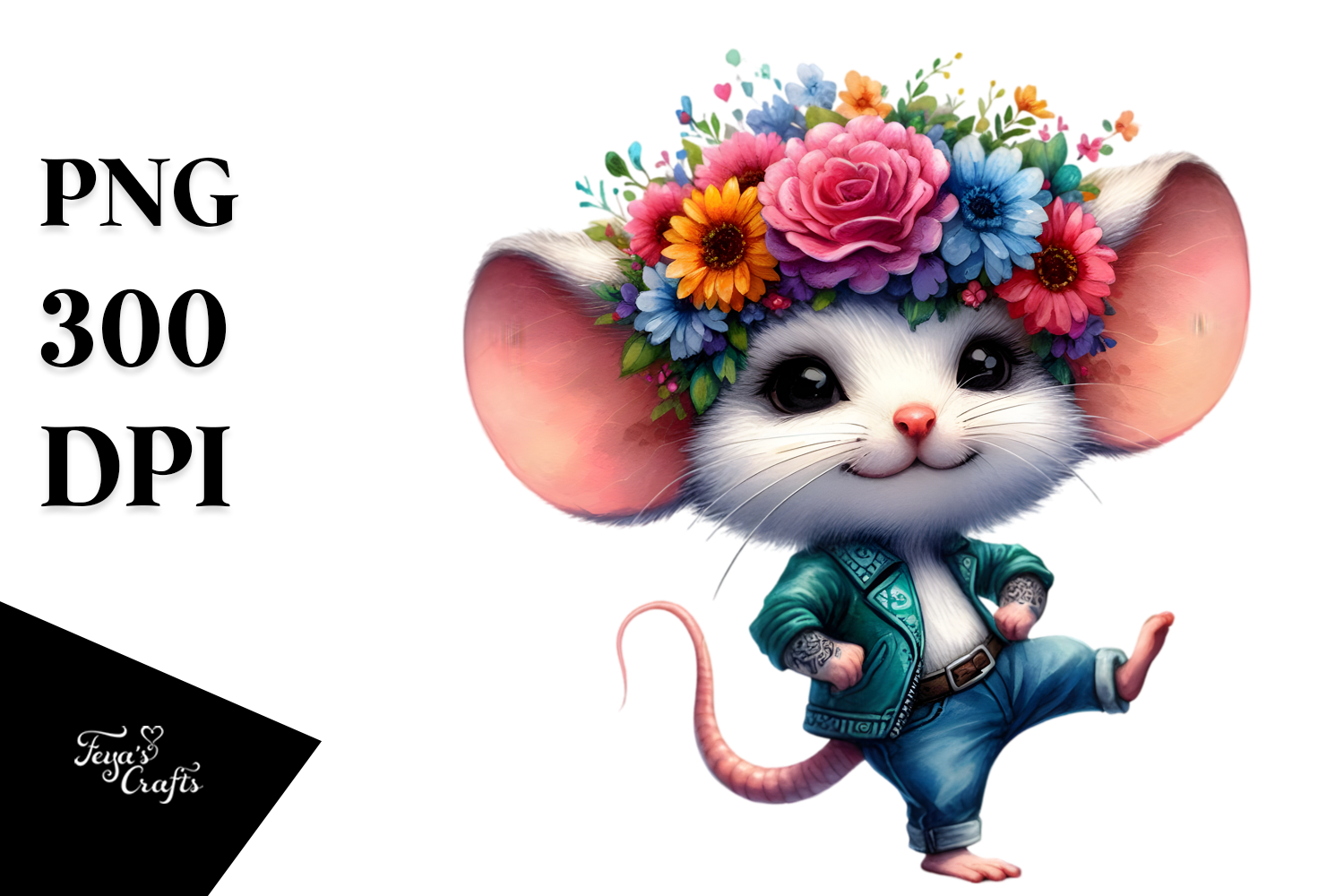 Cool Baby Mouse with Floral Wreath PNG example image 1