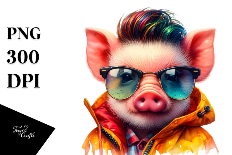 Cute Baby Pig Model with Cool Haircut PNG example image 1