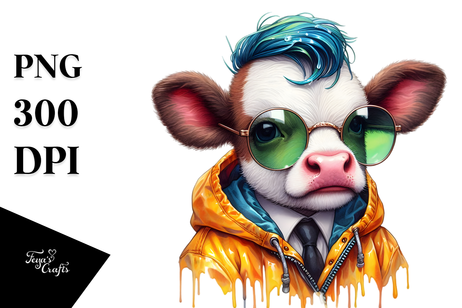 Sticker Summer Flower Png Cow Playing Haircut Sublimation Raincoat