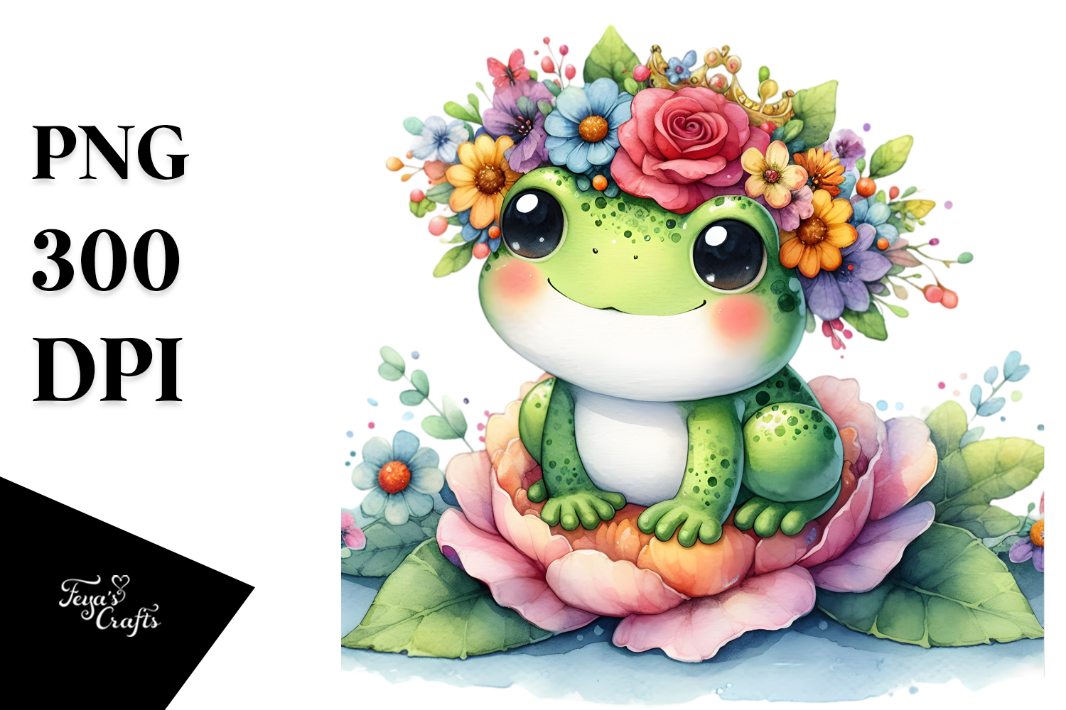 Frog Sitting on Flower with Flower Crown PNG example image 1