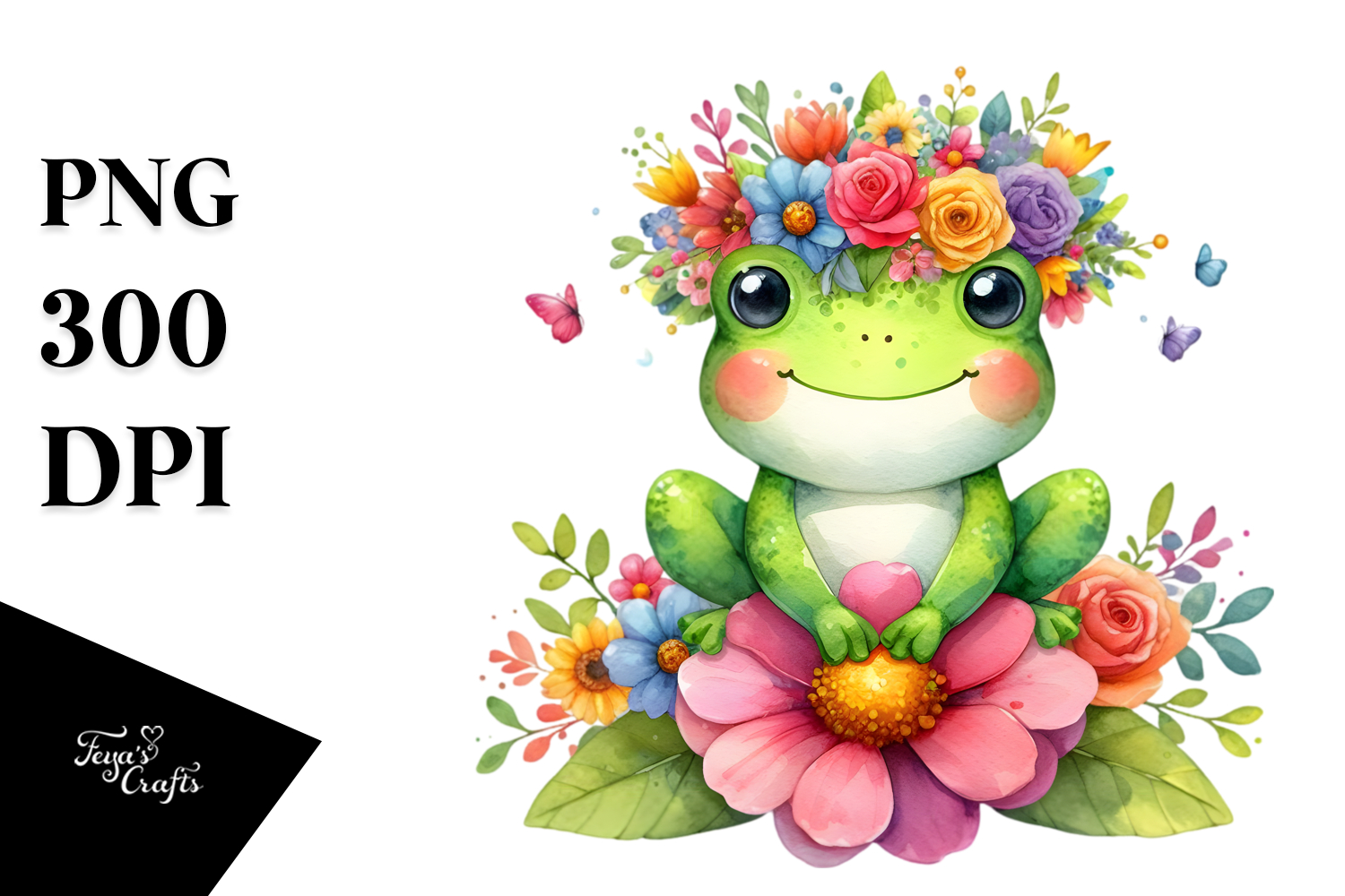 Sticker Summer Flower Sitting Png Frog Sublimation Flowercrown