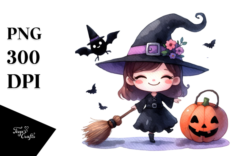 Funny Sticker Summer Halloween Flower Witch Png Sublimation Watercolorstyle