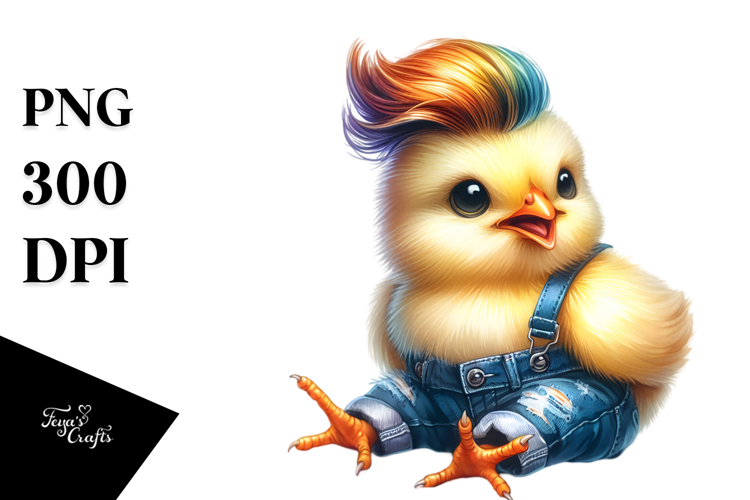Vibrant Baby Chicken with Cool Haircut PNG example image 1