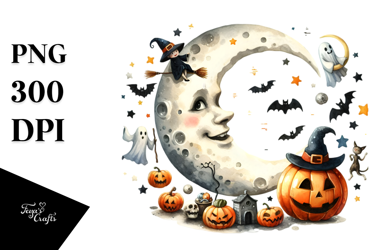 Funny Sticker Summer Halloween Flower Png Moon Sublimation Watercolorstyle