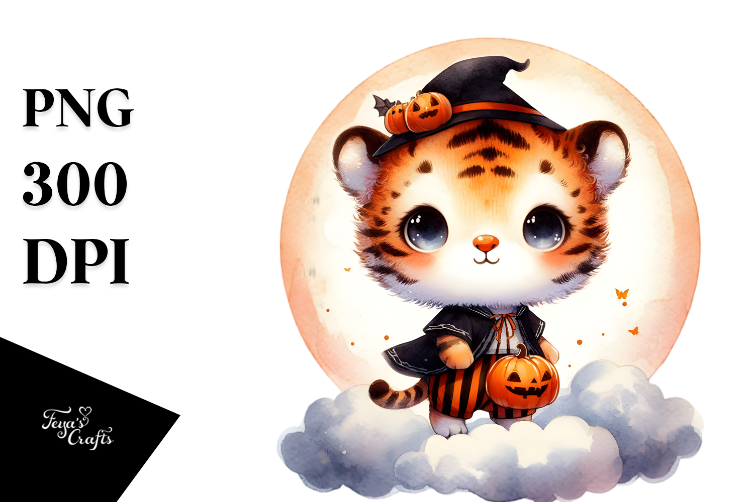 Cute Baby Tiger on Cloud for Halloween PNG example image 1