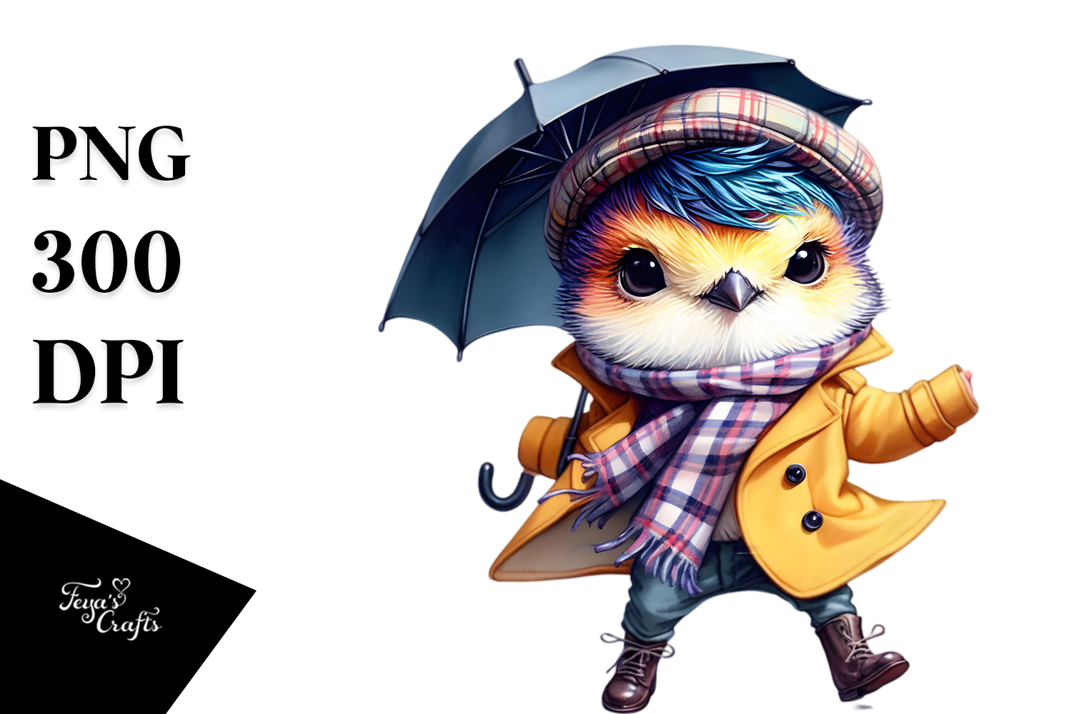 Cute Baby Bird Playing, Vibrant Drawing PNG example image 1