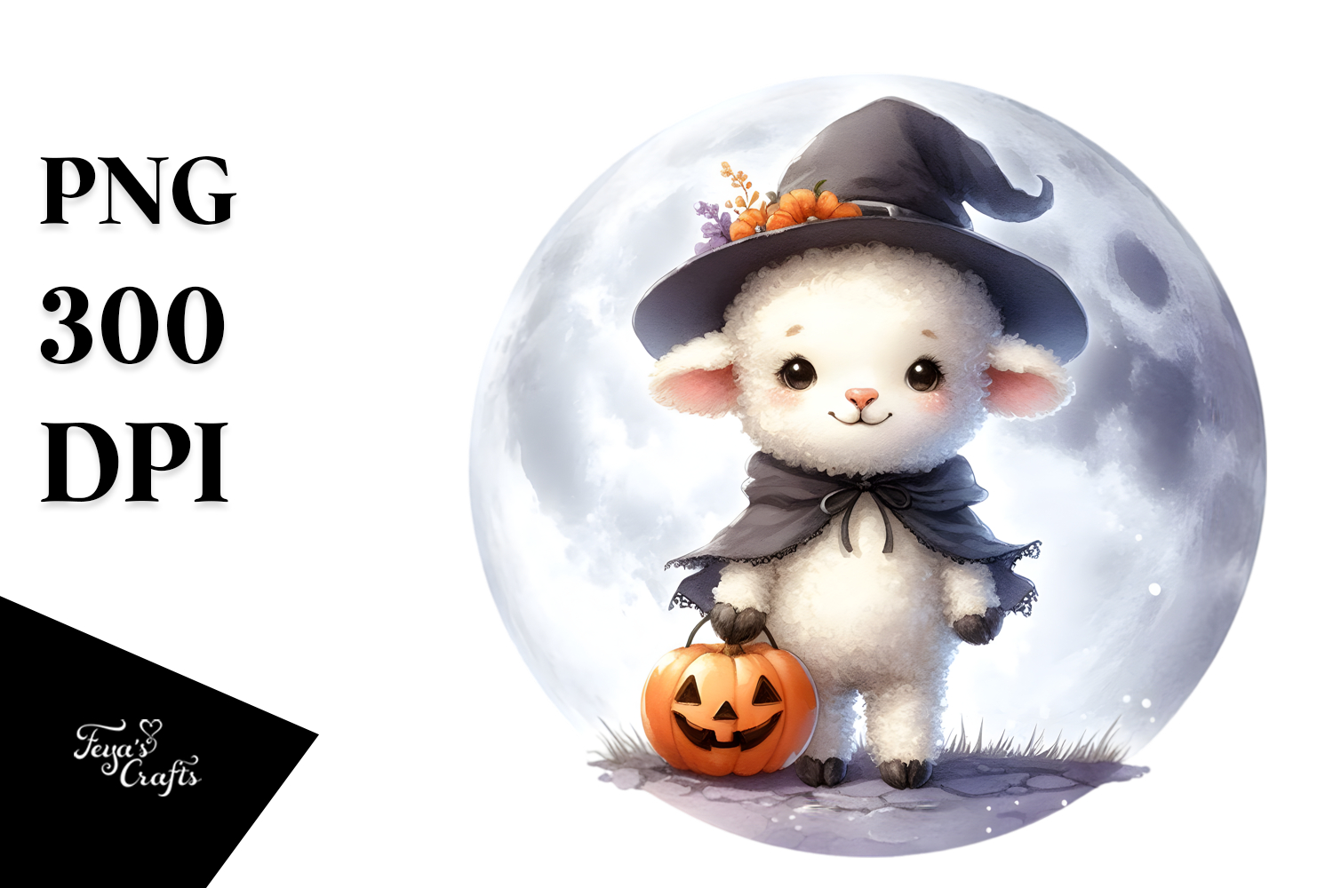 Cute Baby Lamb on Moon for Halloween PNG example image 1