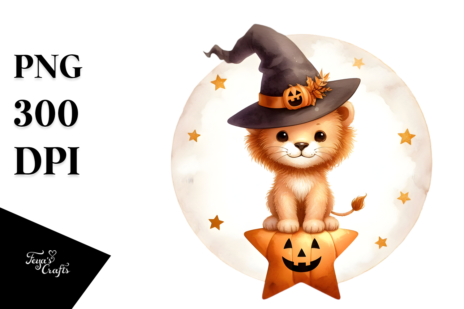 Cute Baby Lion on Star for Halloween PNG example image 1
