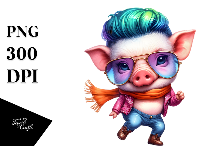 Cute Baby Pig Dancing, Vibrant Drawing PNG example image 1