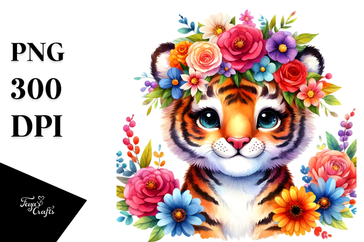 Sticker Summer Cute Flower Png Tiger Sublimation Cartoon-style Vibrantcolors