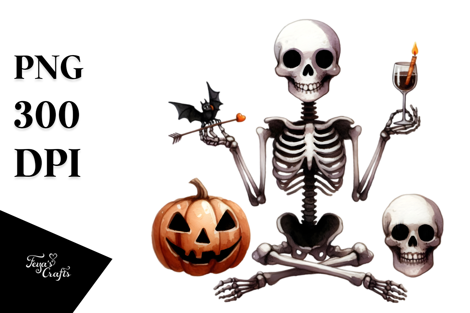 Funny Simple Halloween Clipart Skeleton Sublimation Whitebackground Centered Watercolorstyle