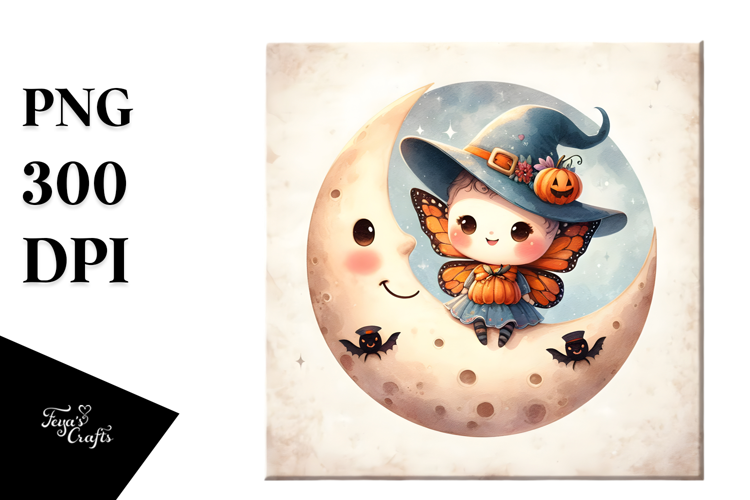 Retro Image Halloween Cute Baby Butterfly Moon Sublimation Highdetails