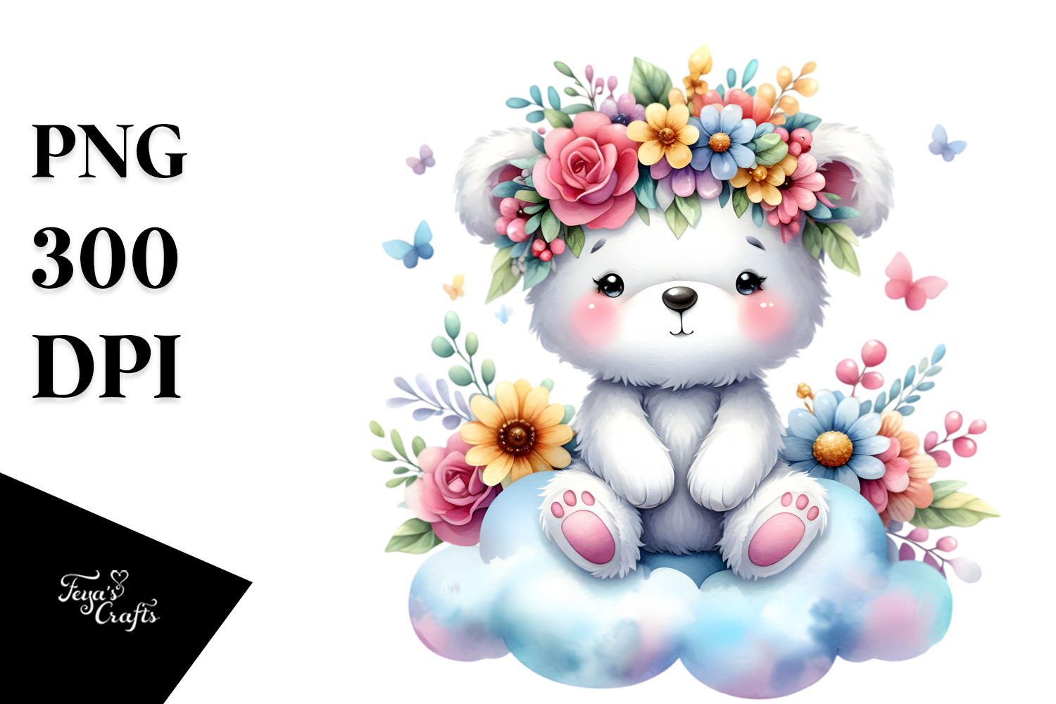 Sticker Summer Flower Bear Sitting Vibrant Png Cloud Sublimation