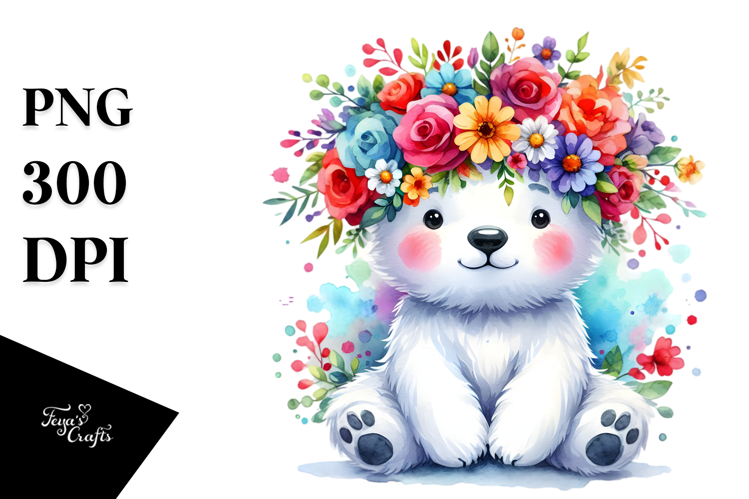 Sticker Summer Flower Png Sublimation Polarbear Cartoon-style Vibrantcolors
