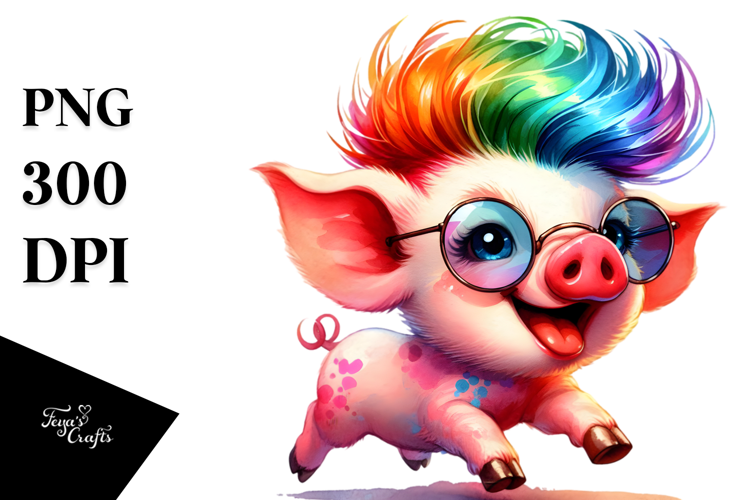 Sticker Summer Flower Png Expressive Running Pig Sublimation Coolhaircut
