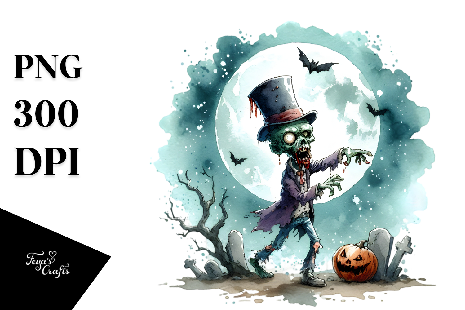 Funny Halloween Clipart with Zombie PNG example image 1