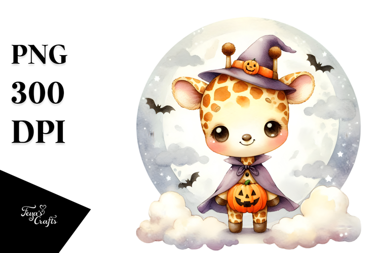 Cute Baby Giraffe, Halloween Theme, PNG example image 1
