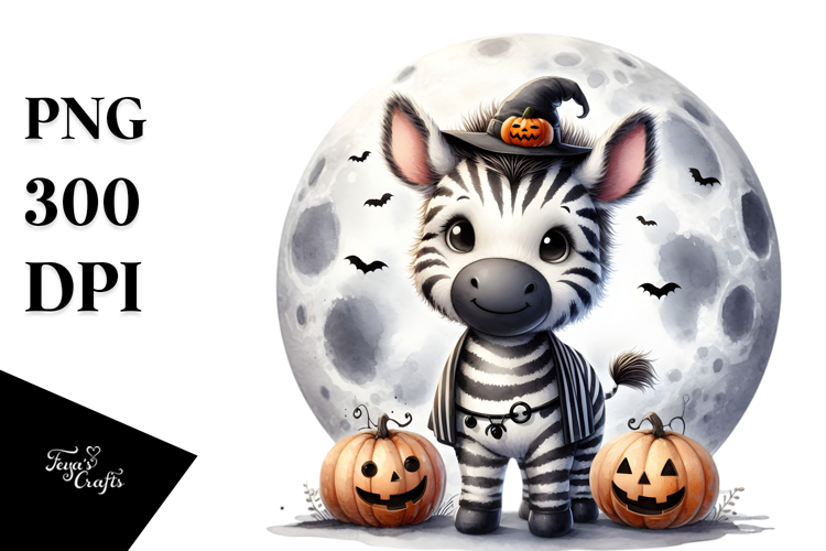 Cute Baby Zebra, Halloween Theme, PNG example image 1