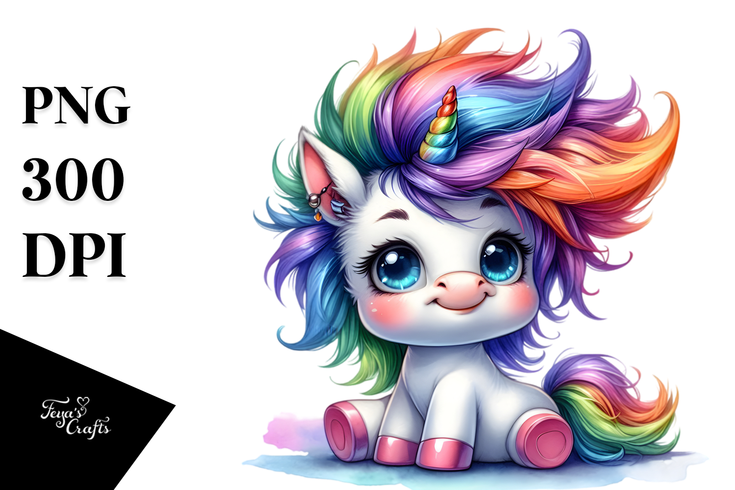 Watercolor Cute Baby Vibrant Unicorn Playing Excited Coolhaircut Expressiveface