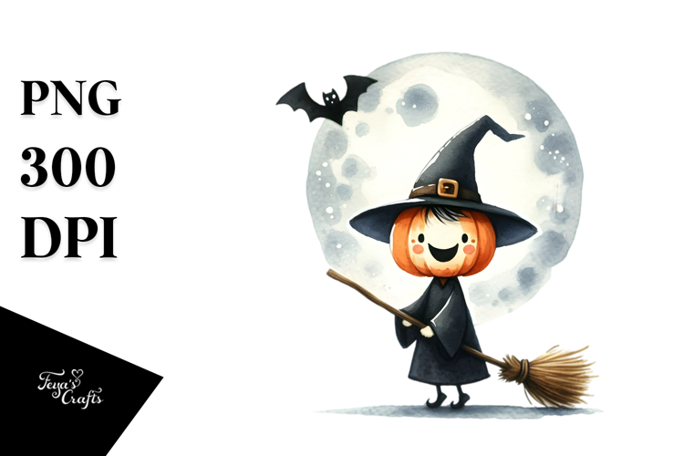 Simple Funny Halloween Clipart with Broomstick, High-Res PNG example image 1