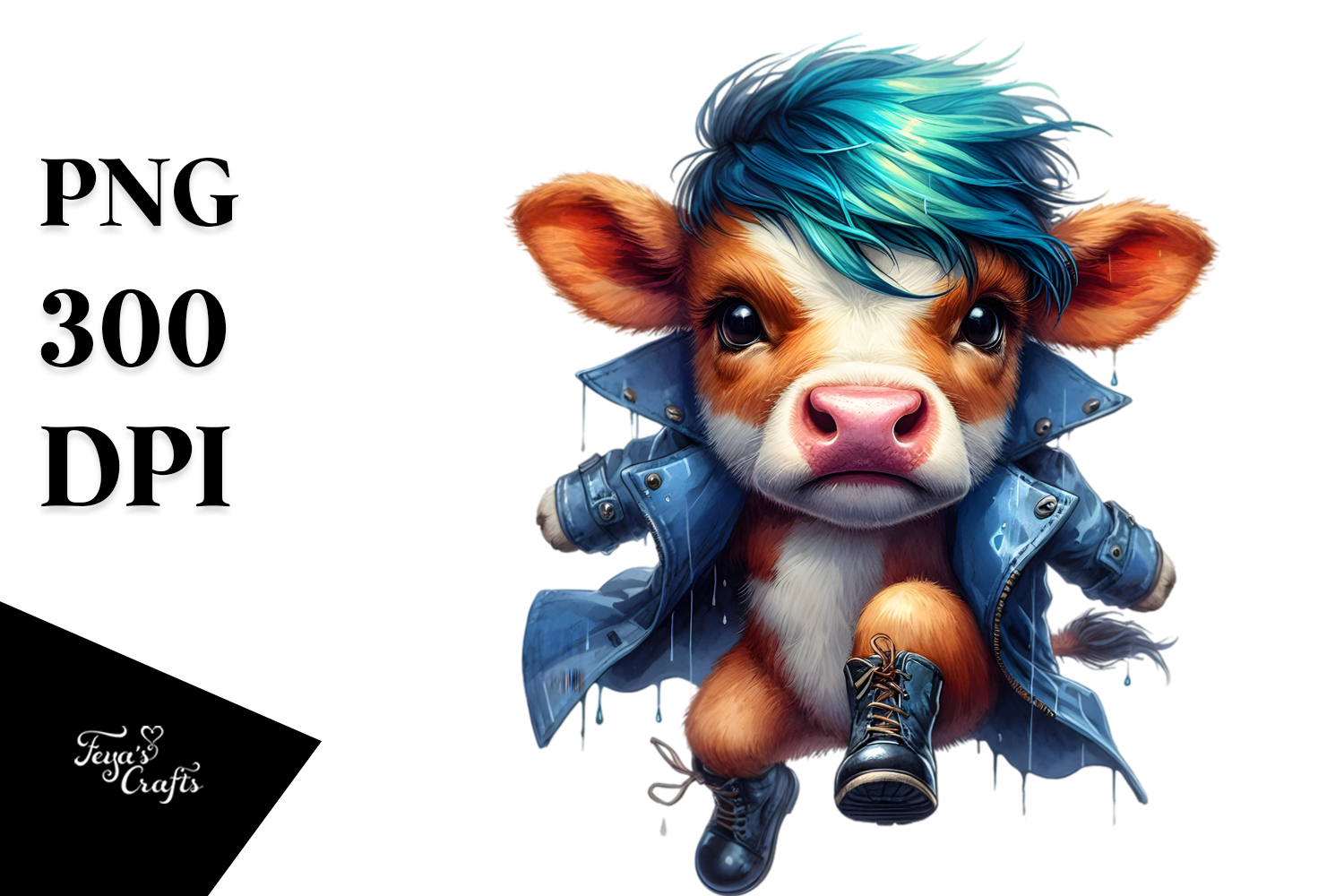 Cute Baby Cow Jumping with Cool Haircut PNG example image 1