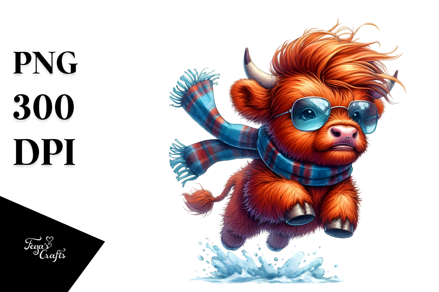 Watercolor Vibrant Drawing of a Cute Baby Highlandcow