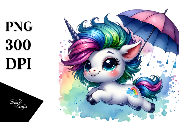 Similar Design Products to Funny Baby Unicorn Jumping with Umbrella, Transparent PNG