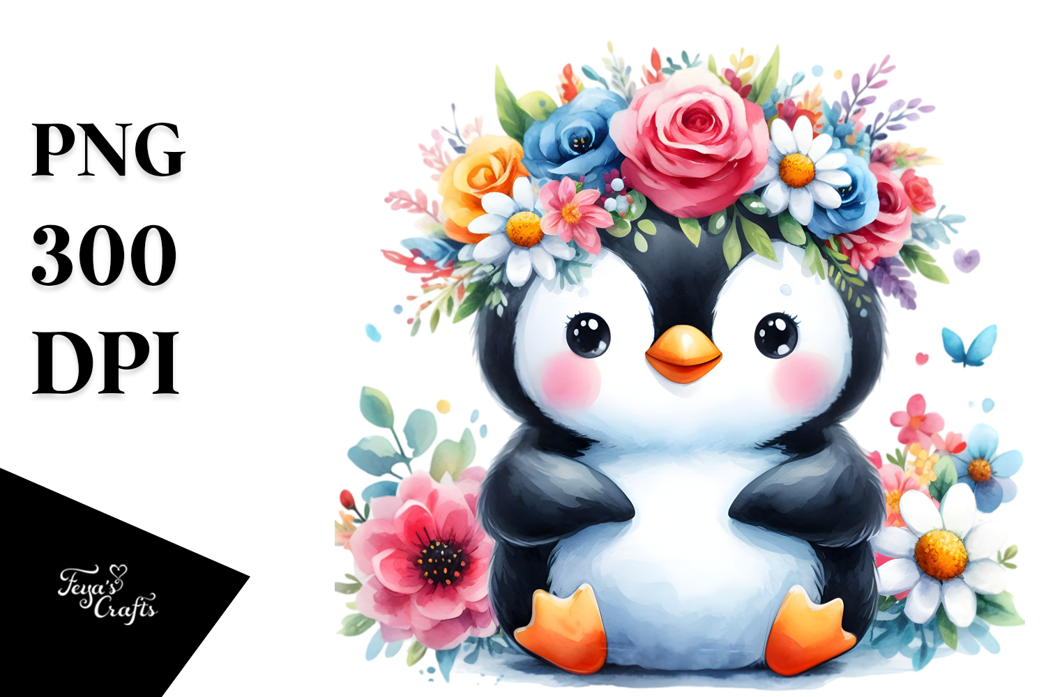 Cute Penguin with Flower Crown, Transparent PNG example image 1