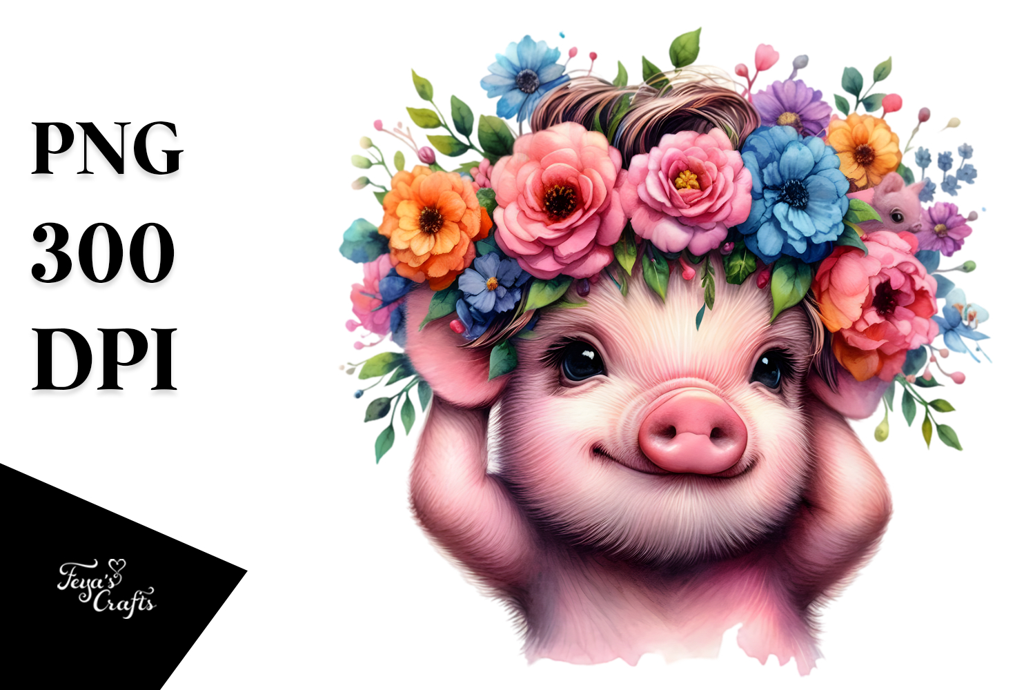 Watercolor Clipart Vibrant Pig Playing Sublimation Floralwreath Coolhaircut Expressiveface