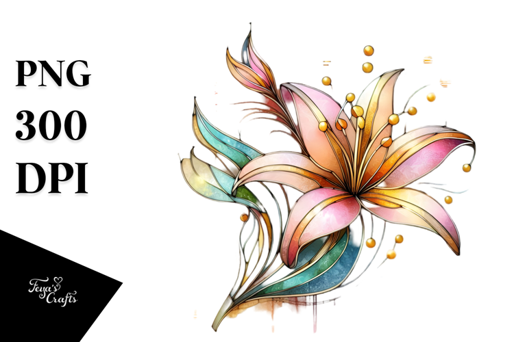 Retro Summer Flower Abstract Lily Pastel Glass Watercolorsplash Stainedglass