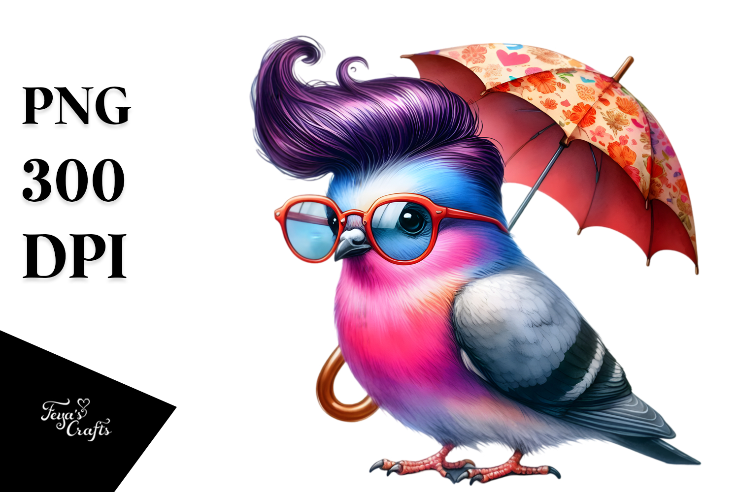 Watercolor Clipart Sitting Vibrant Dove Sublimation Goofy Coolhaircut Expressiveface