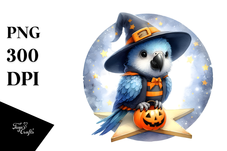 Cute Baby Macaw Halloween Star Digital Painting PNG example image 1