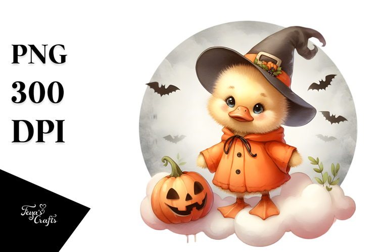 Cute Baby Duck Halloween Retro Cloud Watercolor PNG example image 1