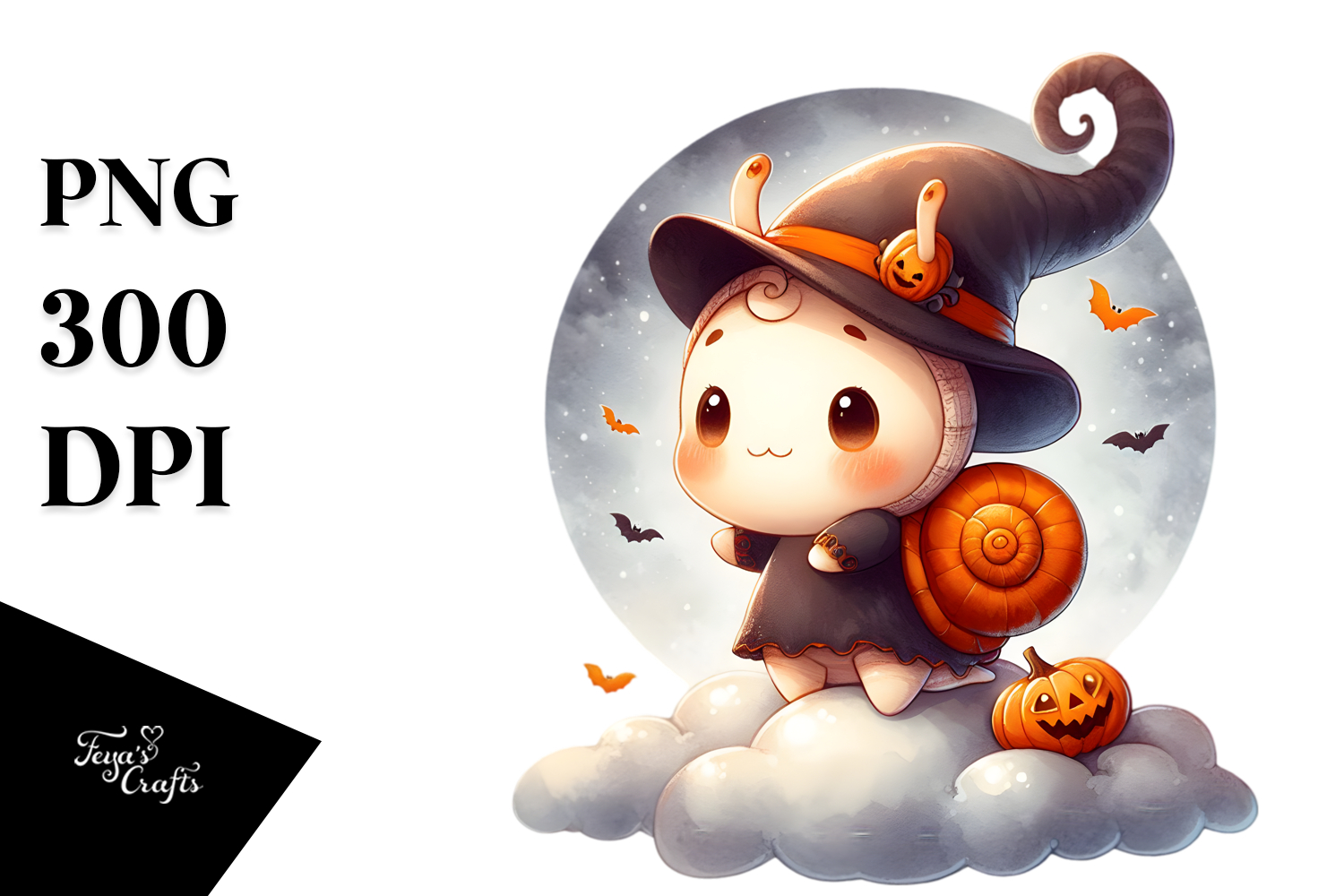 Cute Snail Halloween Retro Cloud Watercolor PNG example image 1