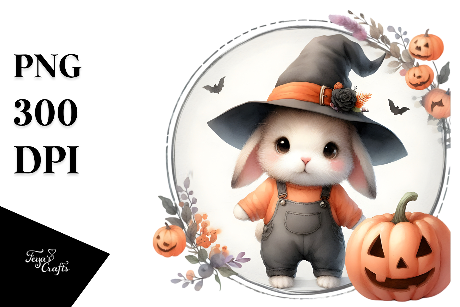 Cute Baby Rabbit, Halloween Theme, PNG example image 1