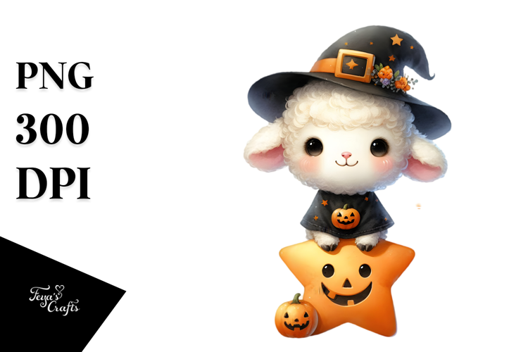 Cute Baby Lamb Halloween Star Digital Painting PNG example image 1